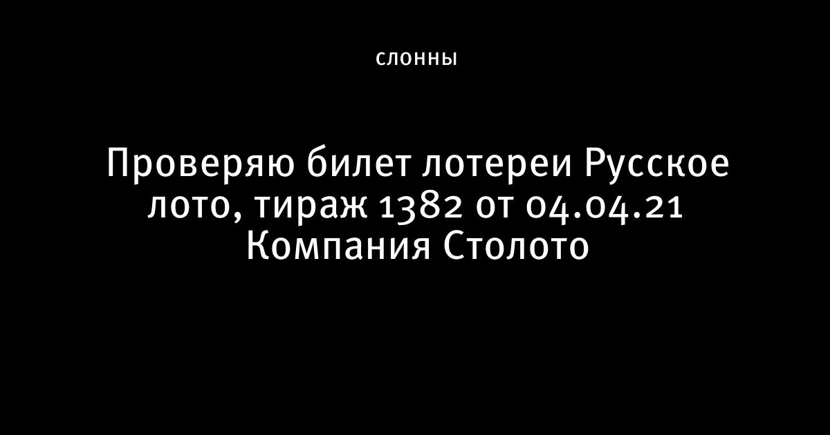 Проверяю билет лотереи Русское лото, тираж 1382 от 04.04.21 Компания Столото