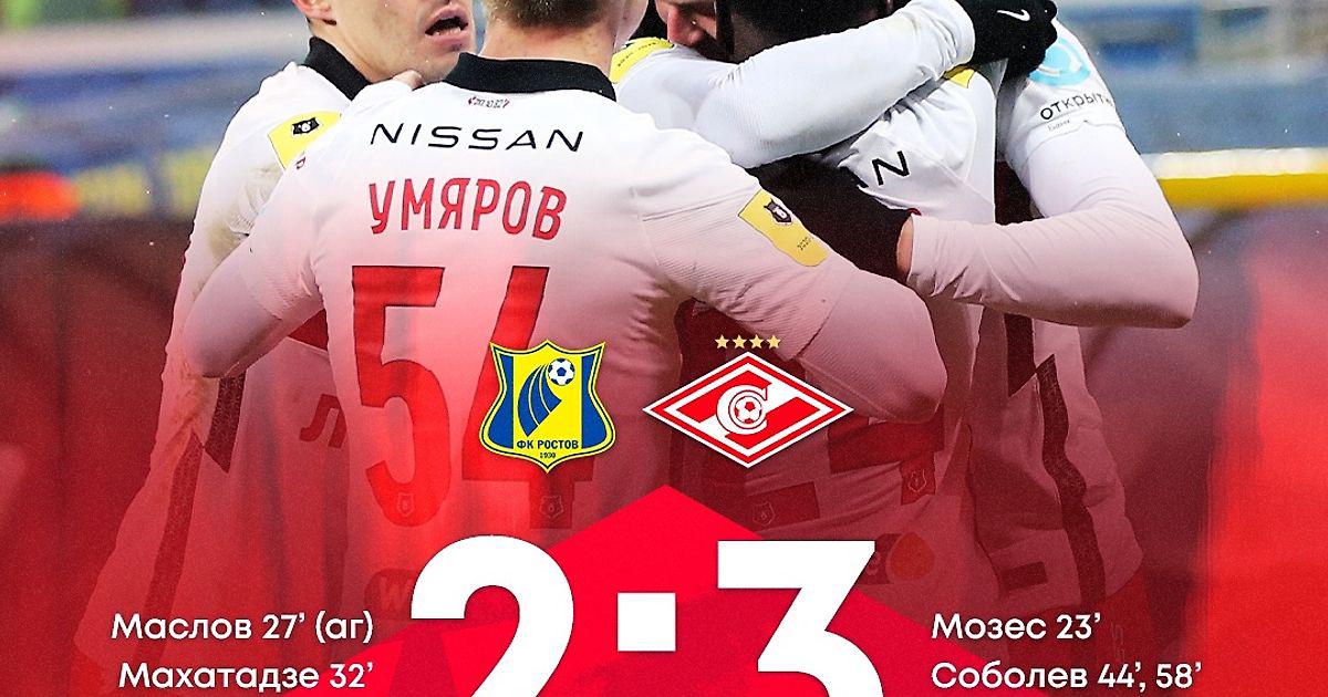 «Спартак» в гостевом матче 24-го тура Тинькофф РПЛ обыграл «Ростов» (3:2).