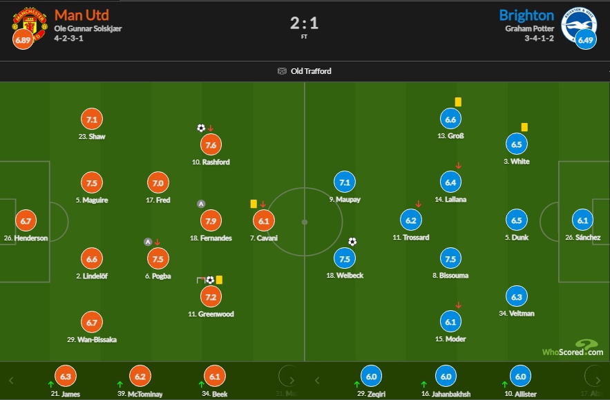 📊 Фернандеш — лучший игрок матча. Оценки за игру с «Брайтоном» по версии WhoScored