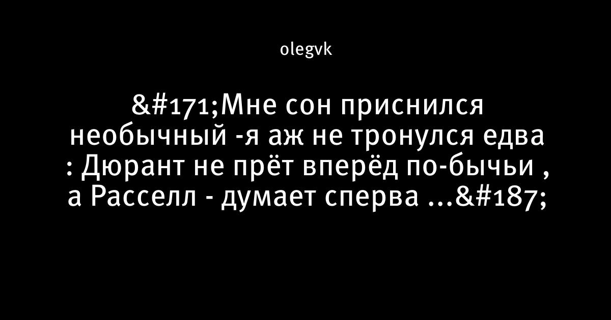 «Мне сон приснился необычный -я аж не тронулся едва : Дюрант не прёт вперёд по-бычьи , а Расселл - думает сперва ...»