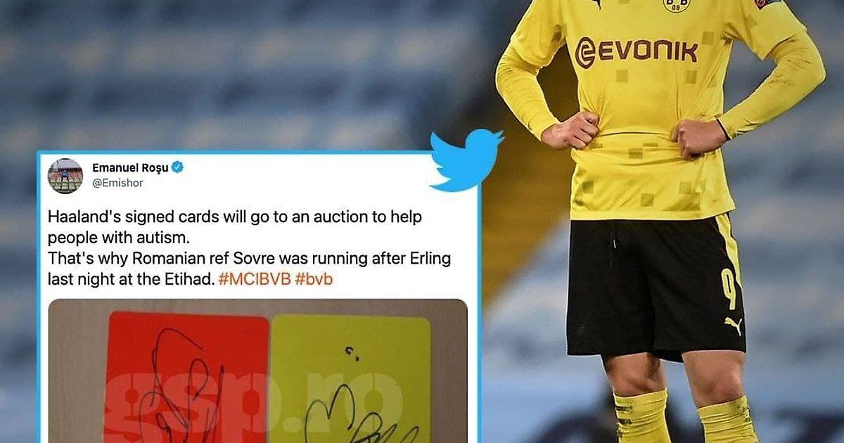 Так вот сегодня стало известно, что арбитр подписал у Эрлинга красную и жёлтую карточки с благими намерениями. Дело в том, что Шовре работает в благотворительной организации по борьбе с аутизмом, которая находится в его родном городе Орадя (западная Румыния). Октавиан собирает памятные вещи из своих европейских матчей уже на протяжении шести лет (Лео Месси подписал для Шовре 9 карточек).