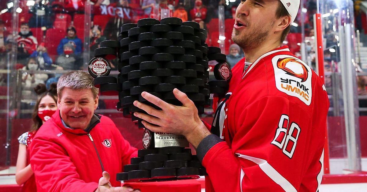 По результатам всех конкурсов победил «Автомобилист» – именно эта команда подняла Автокубок, который состоит из 186 шайб и весит более 25 килограммов.
