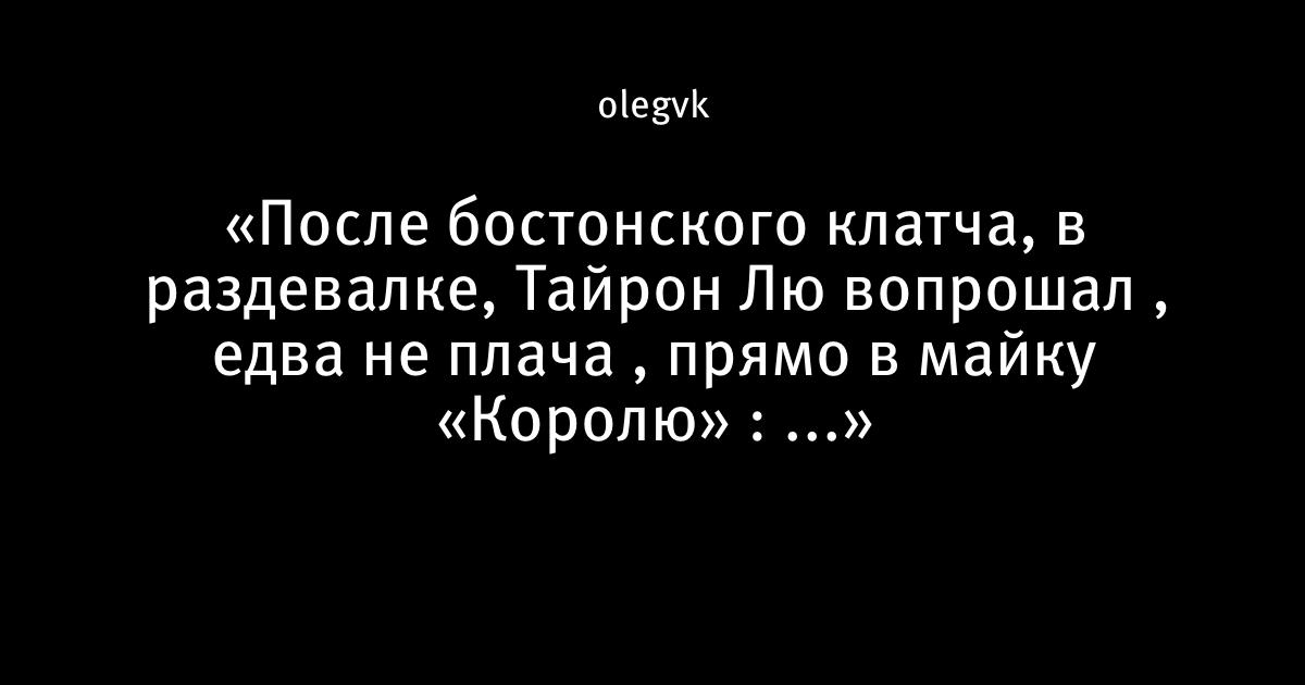 «После бостонского клатча, в раздевалке, Тайрон Лю вопрошал , едва не плача , прямо в майку «Королю» : ...»