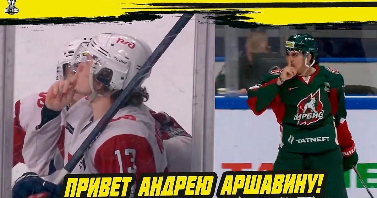 Одно из проявлений эмоций матча, завершившегося со счетом 7:6 ОТ, − празднования заброшенных шайб. Лучший снайпер плей-офф МХЛ Степан Никулин («Локо») и младший сын главного тренера «Ак Барса» Александр Квартальнов («Ирбис») косплеили экс-футболиста сборной России.