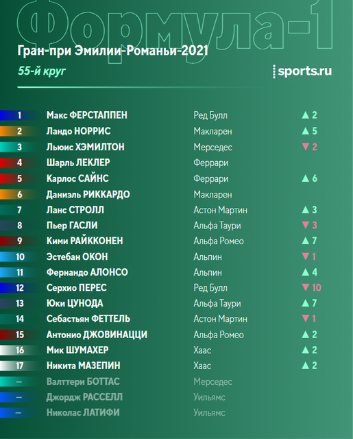 55-й круг И все-таки Хэмилтон дождался момента, включил DRS и обогнал Леклера, который в этот момент сам выпал из «зоны крыла» позади Норриса. Льюис на подиуме!