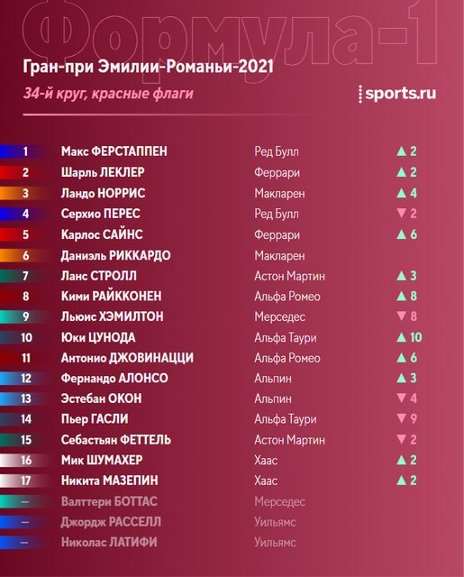 Обновление: положение в личном зачете и Кубке конструкторов, а также отрывы в гонке с учетом штрафов после финиша
