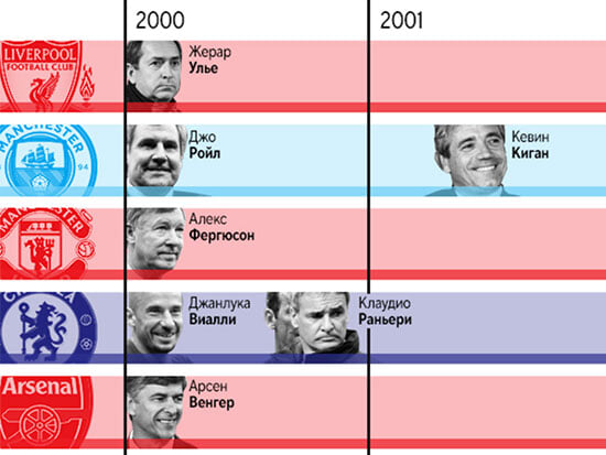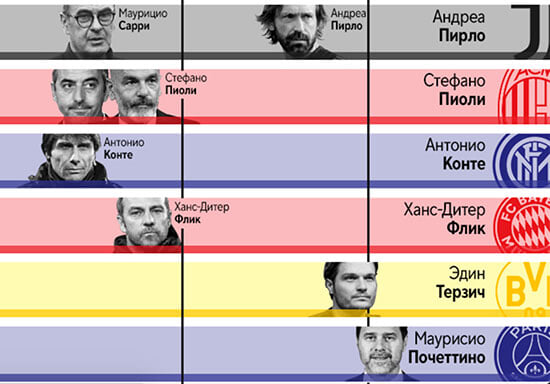 Как менялись тренеры топ-клубов Европы в 21 веке – приятная и понятная графика, которую хочется приближать и листать
