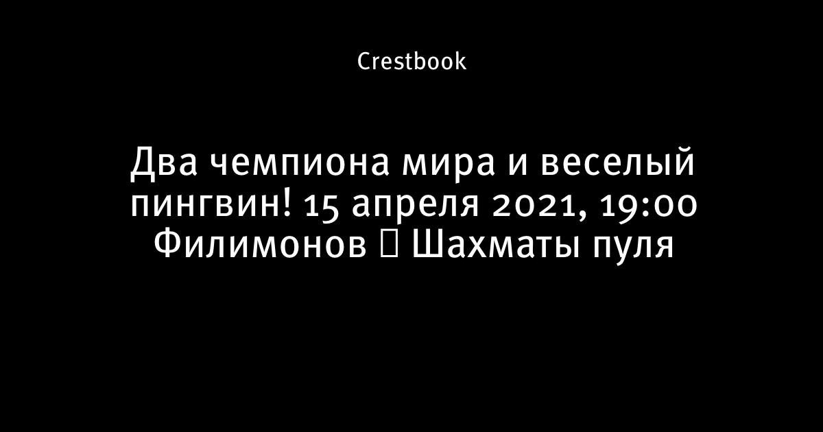 Два чемпиона мира и веселый пингвин! ⏰ 15 апреля 2021, 19:00 🎤 Филимонов ♕ Шахматы пуля