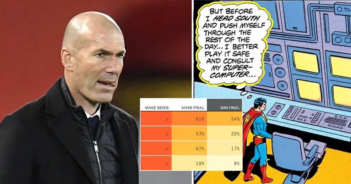 Суперкомпьютер подсчитал и решил, что 13-кратные победители являются вторыми фаворитами после «Манчестер Сити» (54% шансов на победу) и всего с вероятностью 53% выбьют «Челси» в полуфинале.