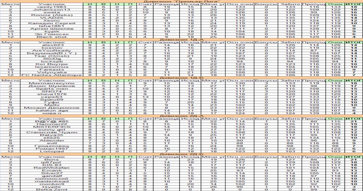 Итоговые результаты игр в Лигах и Дивизионах - здесь;
