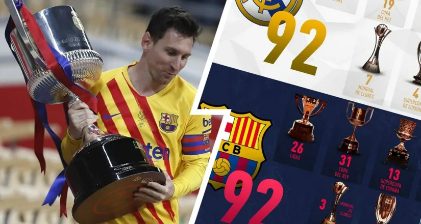 «Барселона» и «Реал Мадрид» завоевали по 92 трофея.