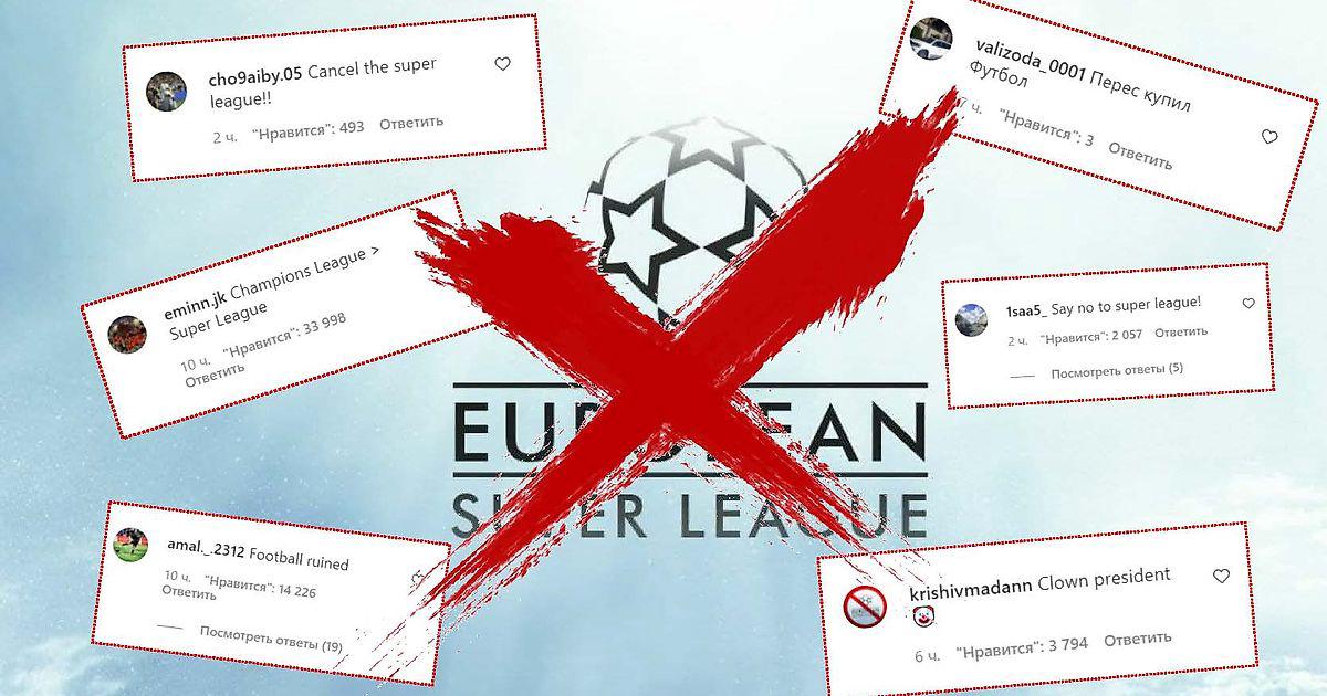 Фанаты по-настоящему взбугуртили – во всех комментариях различных соцсетей, связанных с футболом, появляется только комментарии об отмене Суперлиги. Хэштег #superleague набрал уже более 250 000 публикаций, а хэштеги #notosuperleague и #nosuperleague уже почти 10 000.