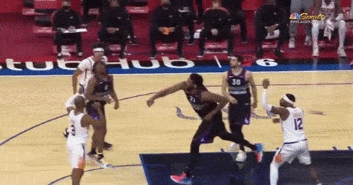 Спасение было настолько близко, что Эмбиид не мог поверить, как же мяч вылетел из корзины.