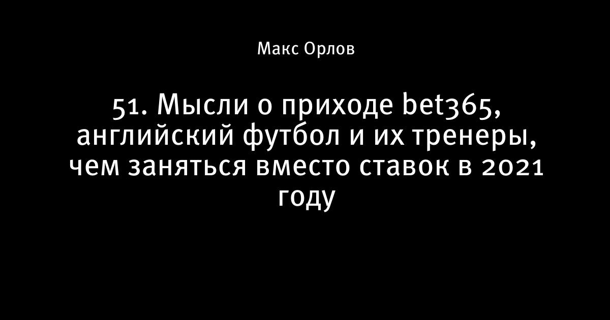 51. Мысли о приходе bet365, английский футбол и их тренеры, чем заняться вместо ставок в 2021 году