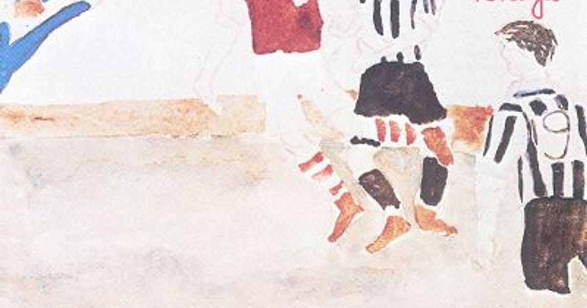 Сопоставив дату рисунка и матчи команд в подобной форме, становится понятно, что юный Леннон запечатлел победный гол финала Кубка Англии 1952 года.