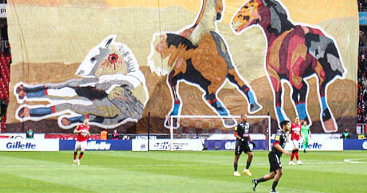 Баннеры и твит – отсылка к кричалке фанатов «Спартака»: «Привет, конюшня, ну как твои дела? Сын егеря вернется и сожжет твои трибуны все дотла». Сын егеря – это Николай Петрович Старостин, основатель «Спартака». Он родился в семье егеря Императорского охотнического общества.
