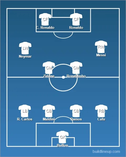 Зидан и Роналдиньо составят суперкреативную полузащиту, а квартет Р. Карлоса, Мальдини, Рамоса и Кафу защитит ворота Буффона.
