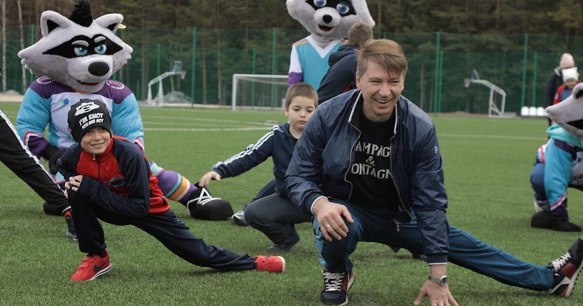 В первый игровой день олимпийский чемпион по фигурному катанию и амбассадор акции «Голевая передача» Алексей Ягудин для всех участников провел зарядку.
