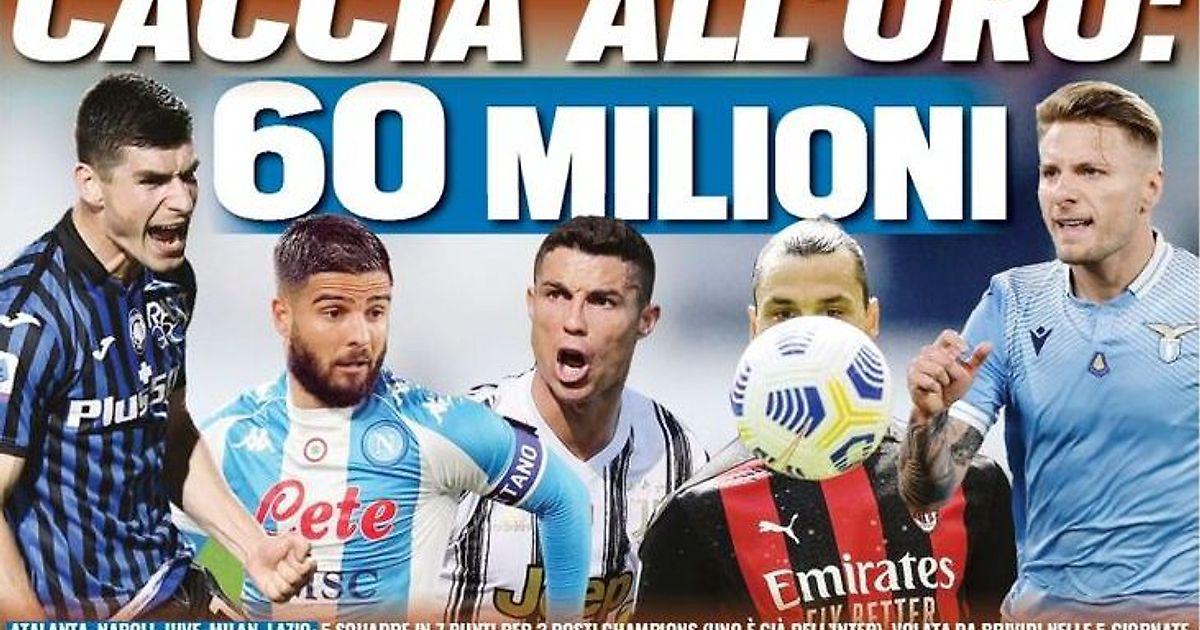 Охота за золотом: 60 миллионов. Заголовки Gazzetta, TuttoSport и Corriere за 28 апреля