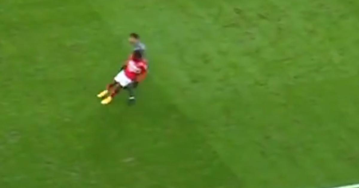 На видео полузащитник красно-белых Виктор Мозес пяткой прокидывает мяч мимо защитника армейцев Георгия Щенникова.