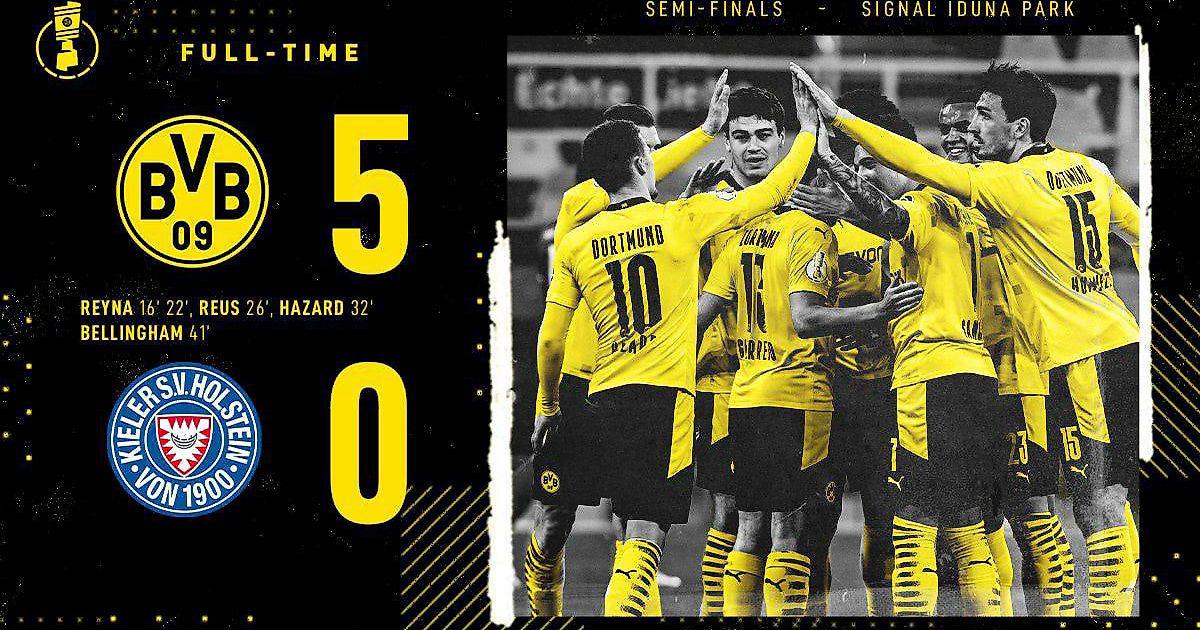 В Дортмунде вчера проходил второй полуфинал Кубка Германии, в котором «Боруссия» принимала гостей из города Киль. Кубок Германии уже преподнес сенсацию мирового масштаба — мюнхенская «Бавария» вылетела из турнира на стадии 1/16 финала, проиграв как раз «Хольштайну» из второй Бундеслиги. Клуб из Киля никогда прежде даже не выступал в первой Бундеслиге, но прямо сейчас борется за повышение в классе, занимая четвертое место в турнирной таблице, отставая на два очка от «Гамбурга», находящегося в зоне стыковых.