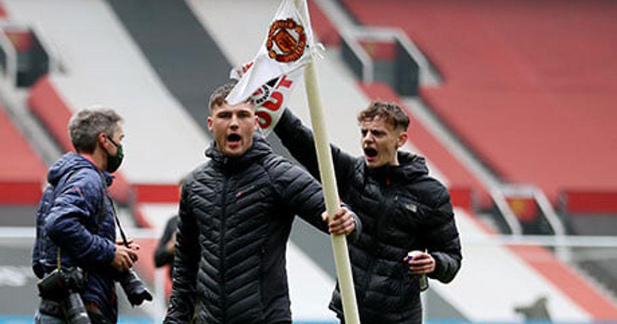 Внутри стадиона фанаты потоптались по газону, выломали как минимум один угловой флажок, разобрали мячи, лежащие на кромке поля. По информации The Athletic, одиночный файер бросили в сторону открытой студии Sky Sports и находящегося на ней Джейми Каррагера, а один из фанатов пролез на подиум для телевизионных включений и сломал штатив для камер. Одновременно с этим болельщик забил единственный на сегодня гол на «Олд Траффорд».