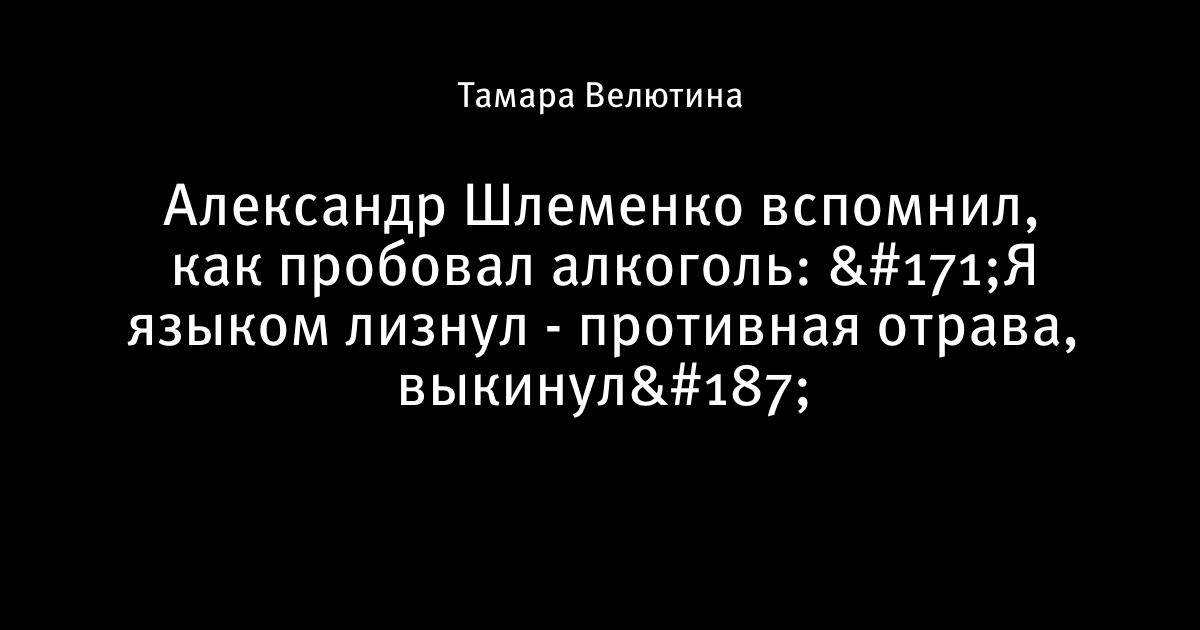 Александр Шлеменко вспомнил, как пробовал алкоголь: «Я языком лизнул - противная отрава, выкинул»