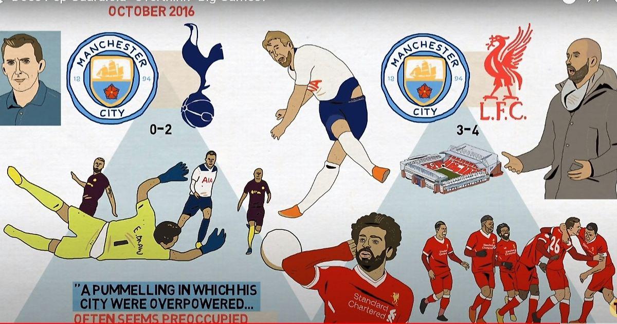 Как заметил Уилсон, "первое поражение [Гвардиолы] в английском футболе произошло на "Уайт-Харт-лейн" в октябре 2016 года... Гвардиола казался озабоченным физической формой команды Маурисио Почеттино". А перед матчем с "Ливерпулем", в 2018 году, "Сити" проиграли со счетом 4:3 на "Энфилде".