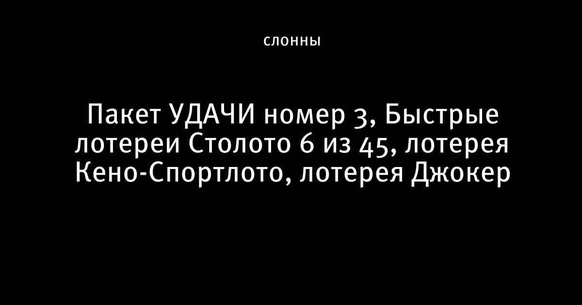 Пакет УДАЧИ номер 3, Быстрые лотереи Столото 6 из 45, лотерея Кено-Спортлото, лотерея Джокер