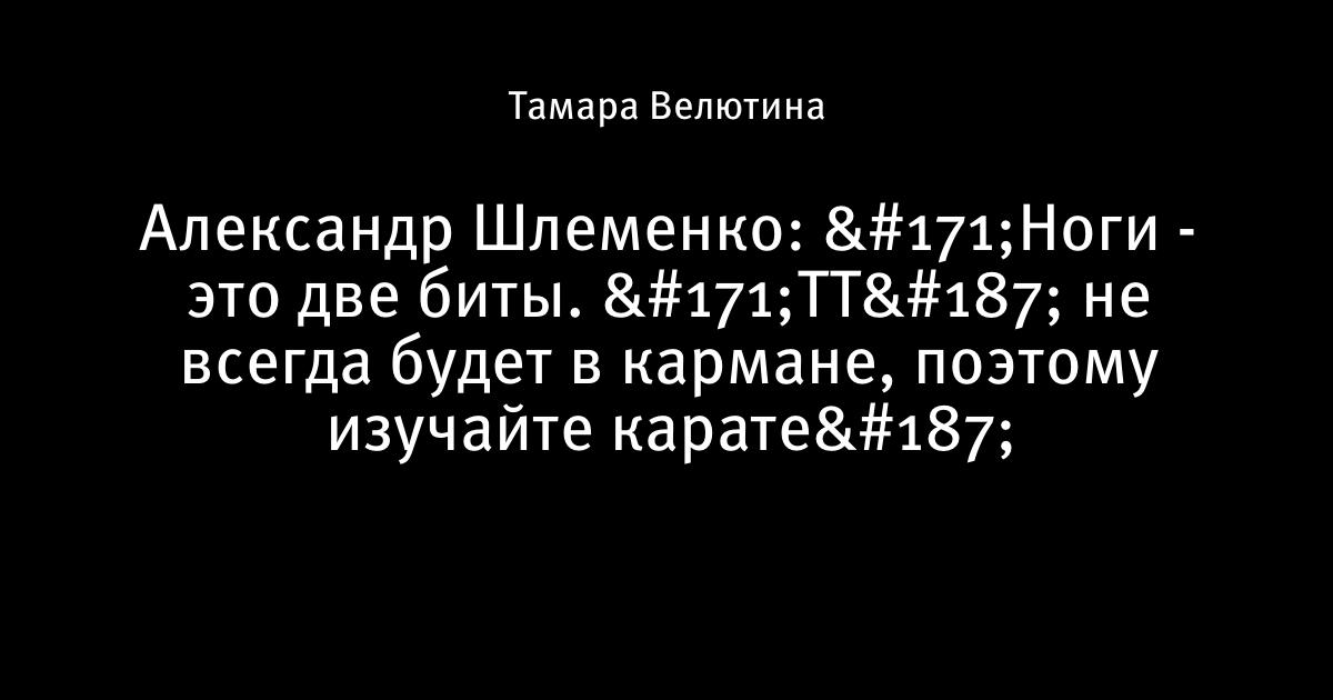 Александр Шлеменко: «Ноги - это две биты. «ТТ» не всегда будет в кармане, поэтому изучайте карате»