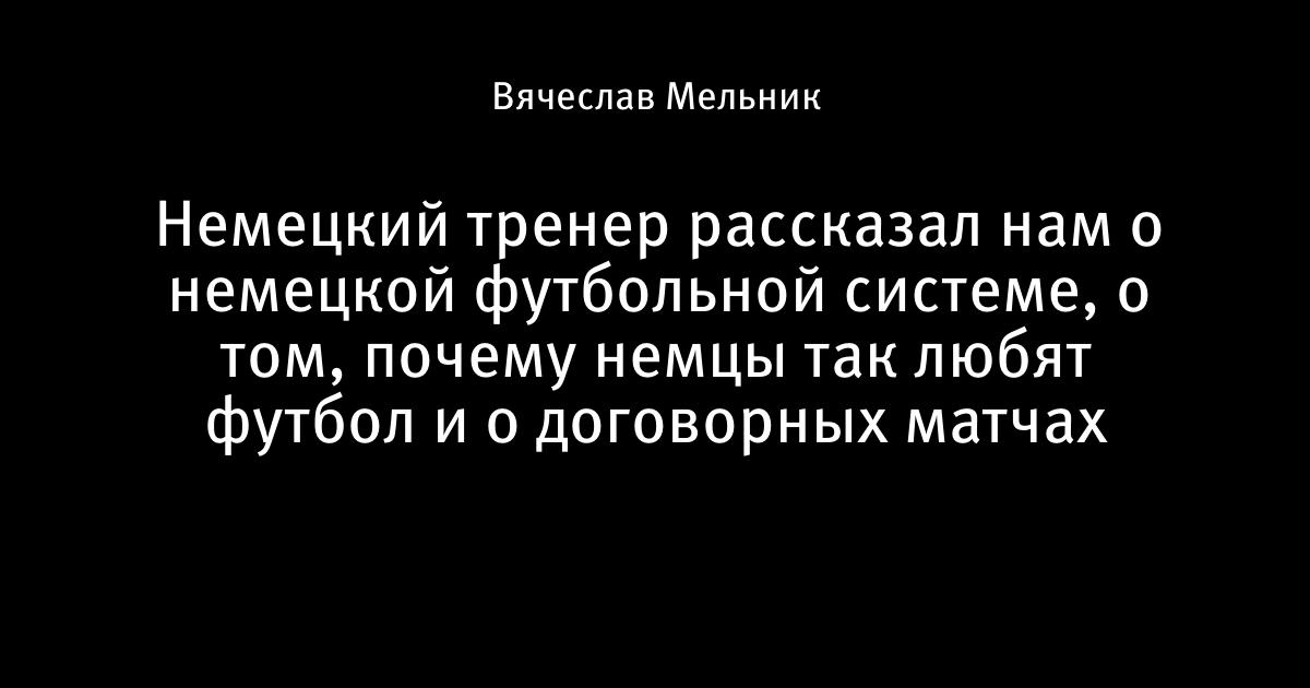 Немецкий тренер рассказал нам о немецкой футбольной системе, о том, почему немцы так любят футбол и о договорных матчах