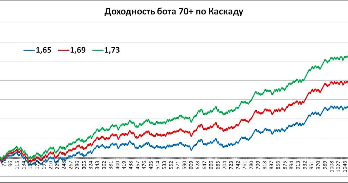 это график доходности, одного из наших ботов, работающего по отбору Каскад.