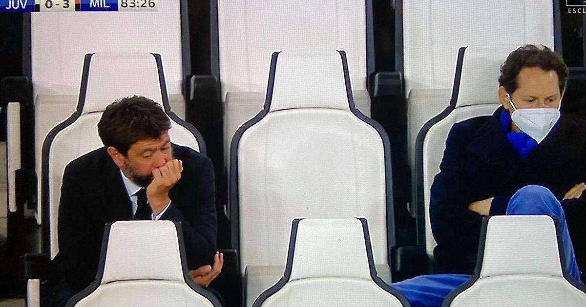 Фото дня. Реакция Аньелли и Элканна на 0:3 в матче с «Миланом»