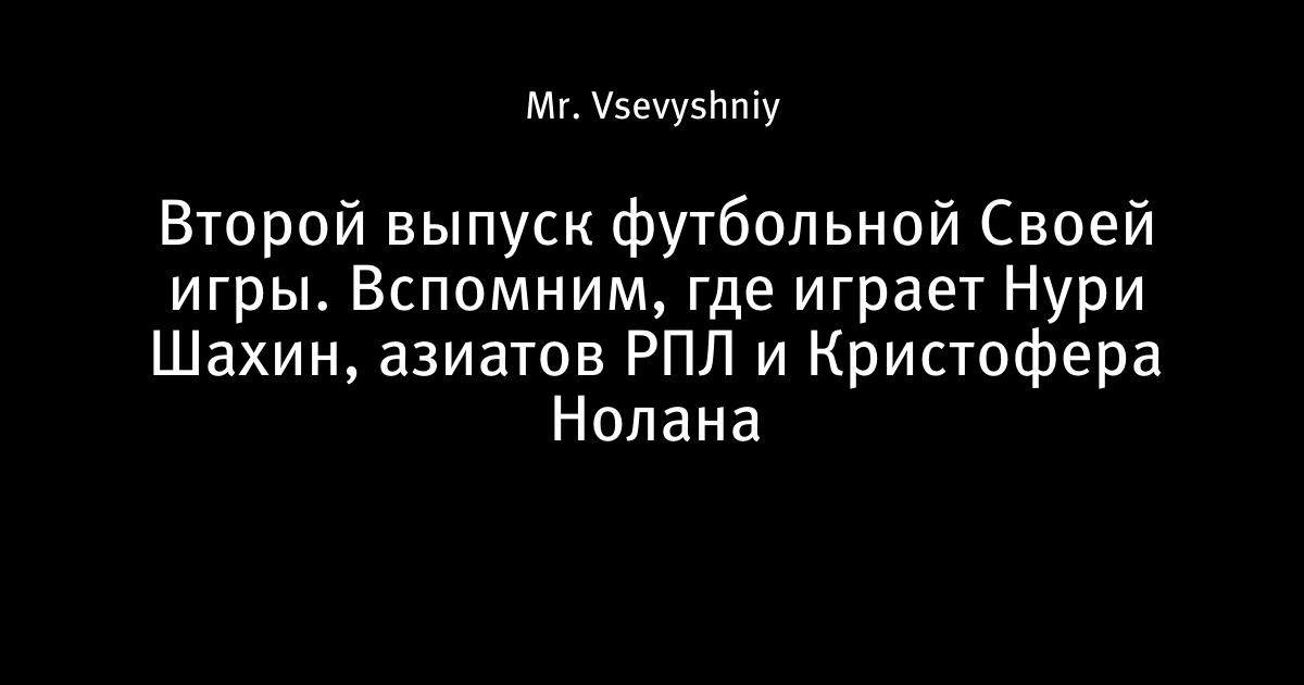 Второй выпуск футбольной Своей игры. Вспомним, где играет Нури Шахин, азиатов РПЛ и Кристофера Нолана