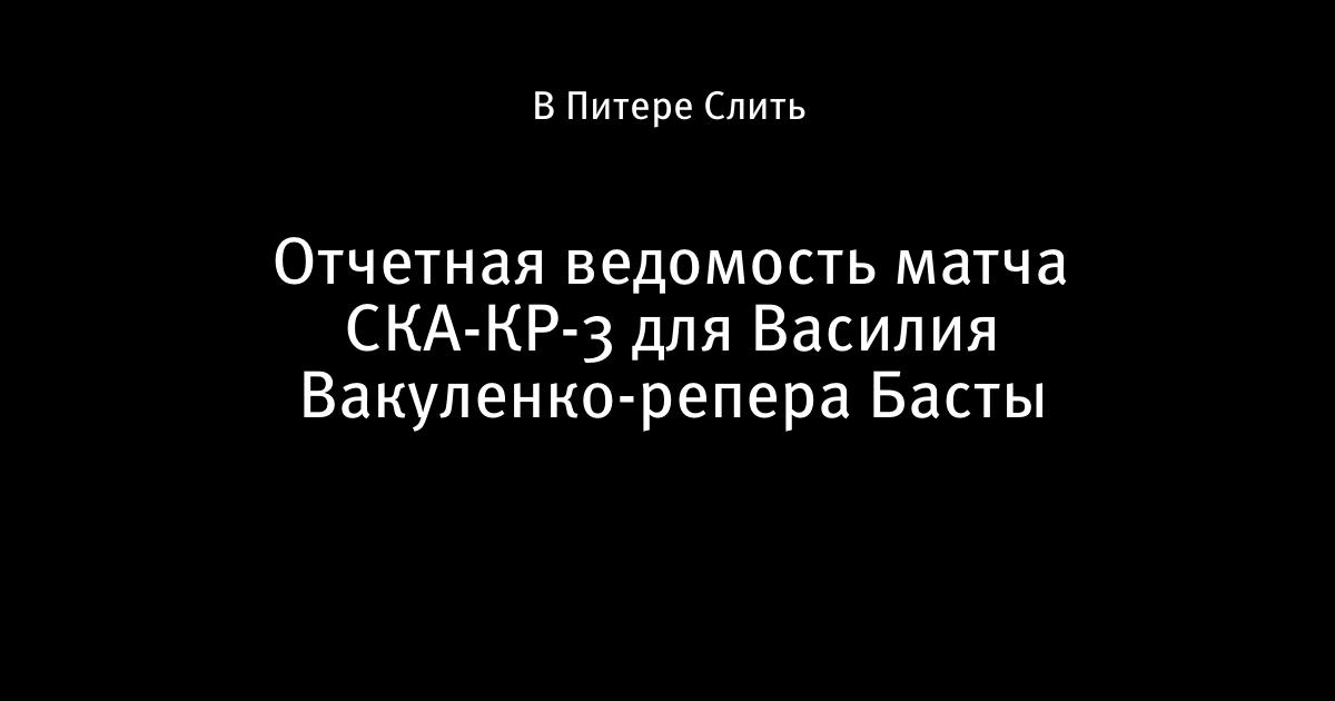 Отчетная ведомость матча СКА-КР-3 для Василия Вакуленко-репера Басты