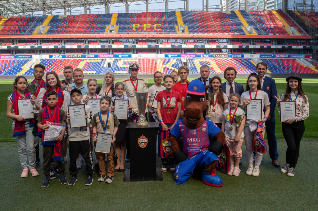Все ребята смогли сфотографироваться с Кубком УЕФА. Этот трофей ПФК ЦСКА завоевал ровно 16 лет назад первым среди российских клубов. Также в рамках мероприятия состоялась презентация программы нашего клуба по поддержке школьных секций футбола. Участниками стали генеральный директор красно-синих Роман Бабаев, директор Московского центра «Патриот.Спорт» Марат Кучушев, а также учителя физической культуры и директора школ районов Щукино и Хорошево-Мневники. — Будем рады, если кто-то из детей дорастет до основной команды, но это не главная цель, а косвенный эффект, — сказал Роман Бабаев. — Главное, чтобы у них горели глаза, чтобы они отвлеклись от гаджетов, увлекались спортом, приобщались к нашей истории. Поколение непростое, современное, но никто не отменял здоровый образ жизни. Хочется, чтобы дети как можно чаще занимались спортом. Надеемся, получится интересный проект. Будем рады видеть ребят на матчах, у нас для этого есть даже специальные сектора. После презентации Бабаев и Кучушев подписали соглашение о сотрудничестве между клубом и центром «Патриот.Спорт», которое позволит расширить реализацию программы Урок ЦСКА. Урок ЦСКА — это социальная программа, направленная на популяризацию ПФК ЦСКА, занятий футболом, физической культурой и спортом, а также здорового образа жизни. В рамках программы в школах проходят классные часы об истории красно-синих, мастер-классы с игроками основного состава, молодежной и женской команд армейцев, учащиеся получают возможность бесплатного посещения домашних матчей нашего клуба и экскурсионных туров по ВЭБ Арене.