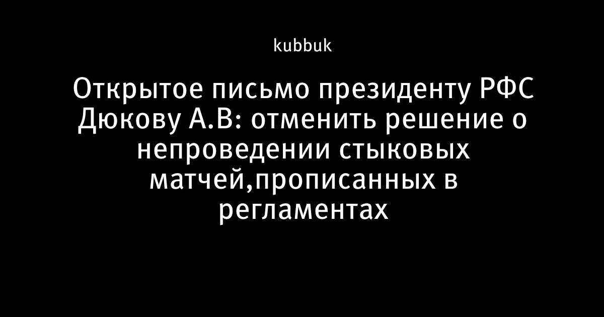 Открытое письмо президенту РФС Дюкову А.В: отменить решение о непроведении стыковых матчей,прописанных в регламентах
