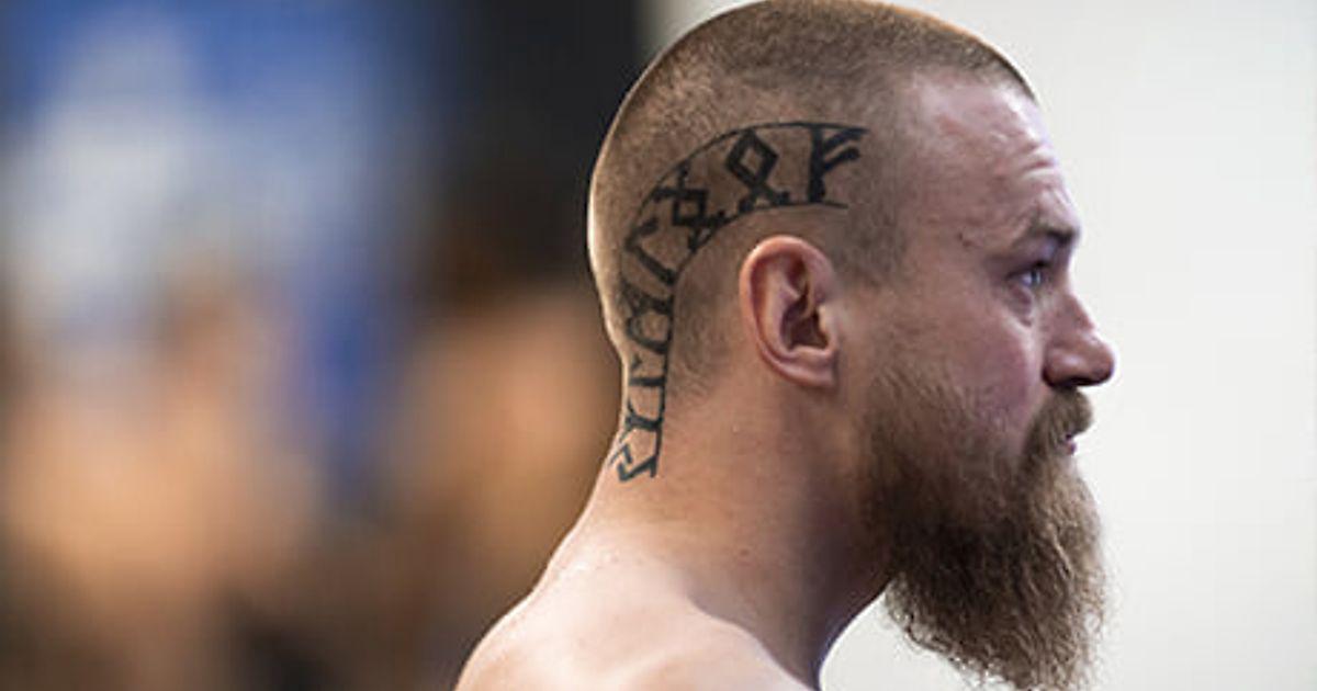Кузнецов, в Будапеште взявший два золота и серебро, сменил образ на максимально брутальный: стрижка почти под ноль, густая и длинная борода. На голове проглядывает и татуировка – изображение кельтских рун. Обычно руны наносят для защиты и привлечения удачи.