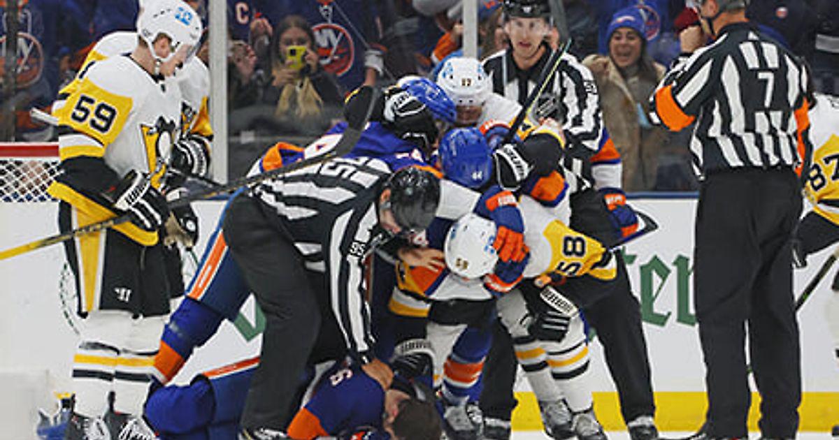 «Айлендерс» и «Питтсбург» устроили массовую потасовку. Арбитры не стали разбираться – просто удалили обе пятерки