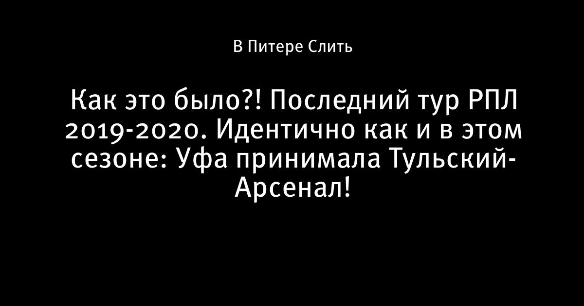 Как это было?! Последний тур РПЛ 2019-2020. Идентично как и в этом сезоне: Уфа принимала Тульский- Арсенал!