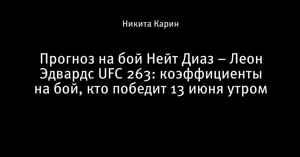 13 июня пройдет UFC 263, в главном карде которого Нейт Диаз подерется против Леона Эдвардса.