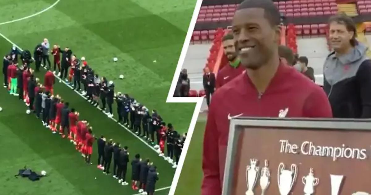 Georginio Wijnaldum gets a great send off and guard of honour by his Liverpool team at Anfield! 🔴@GWijnaldum pic.twitter.com/Gr10cB8Aae