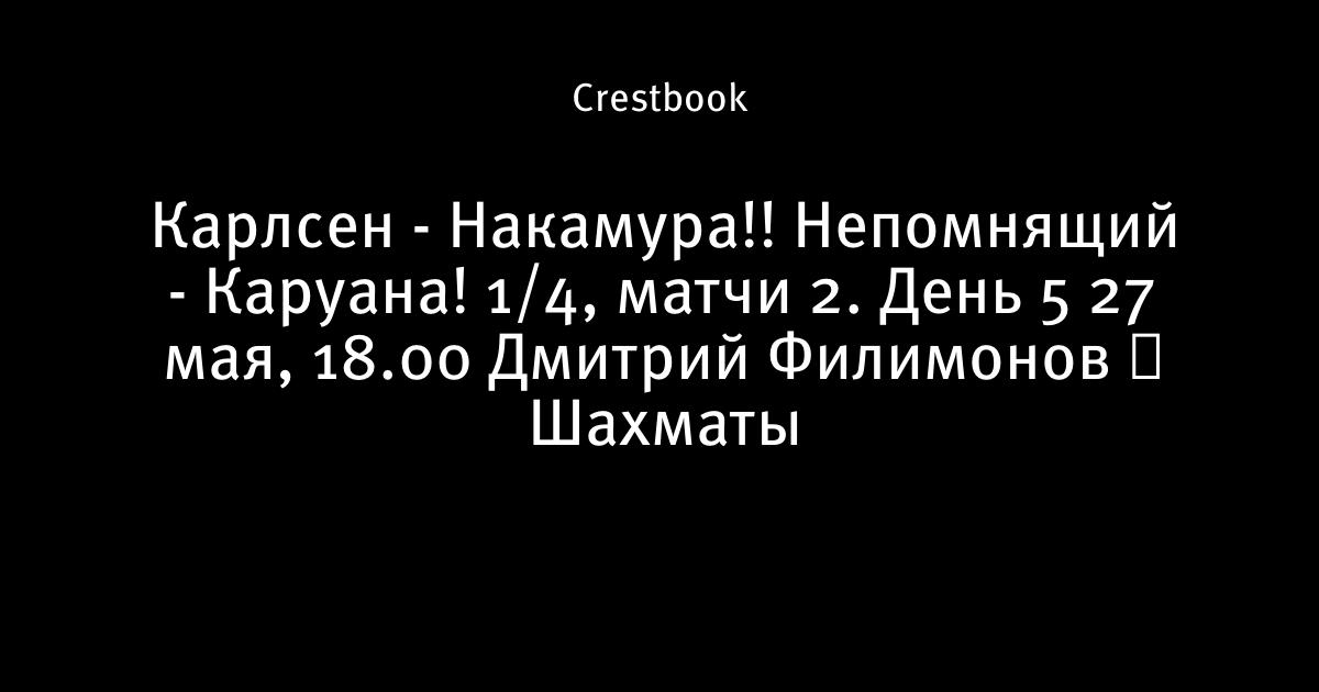 Карлсен - Накамура!! Непомнящий - Каруана! 🏆 1/4, матчи 2. День 5 ⏰ 27 мая, 18.00 🎤 Дмитрий Филимонов ♕ Шахматы