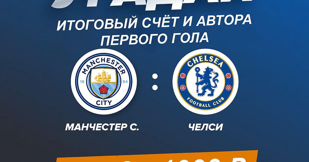 ✅ угадать итоговый счёт финального матча Лиги Чемпионов "Манчестер Сити" - "Челси" и игрока, который первым забьёт гол.