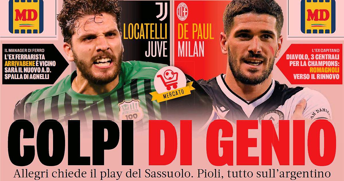 Возможные трансферы Локателли в «Юве» и Де Пауля в «Милан», список игроков, необходимых Аллегри, а также вероятное назначение Сарри в «Лацио» – в утреннем обзоре заголовков итальянских спортивных изданий в блоге «В гостях у Кальчо».