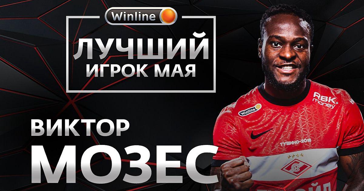 Среди претендентов на звание лучшего игрока мая были защитник Виктор Мозес, полузащитники Квинси Промес и Роман Зобнин, нападающие Джордан Ларссон и Александр Соболев. Безоговорочное первое место в голосовании занял Виктор Мозес, «серебряный» гол которого вывел «Спартак» в квалификацию ЛЧ (49%). На второй позиции оказался Джордан Ларссон, забивший два победных мяча в майских играх (25%). На третьей строчке — Александр Соболев, отличившийся результативными действиями во всех трех матчах месяца (16%). В ближайшее время наш партнер букмекерская компания Winline определит болельщика, который сможет вручить Мозесу специальный приз на «Открытие Банк Арене».