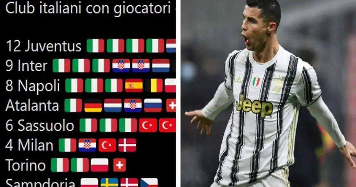 Среди 12 футболистов «бьянконери» четыре представителя Италии, (Кьеллини, Бонуччи, Бернардески и Кьеза), голландец (де Лигт), португалец (Криштиану Роналду), швед (Кулусевски), француз (Рабьо), испанец (Мората), турок (Демирал), поляк (Шченсны) и, наконец, 1 валлиец (Рэмзи).
