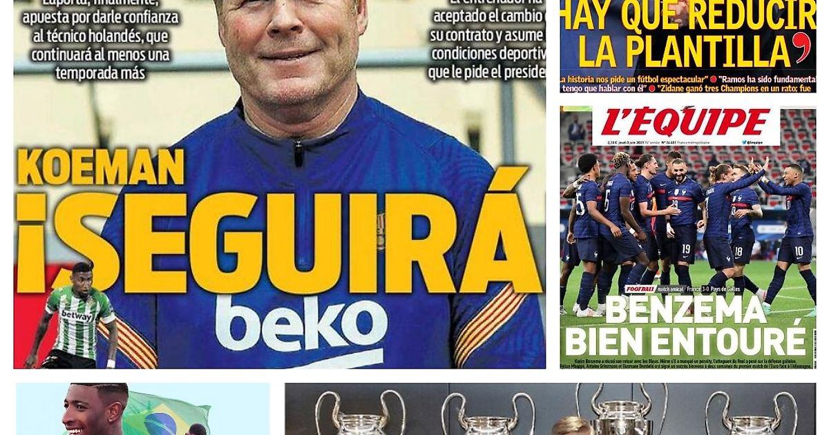 Здравый смысл возобладал, и Куман останется тренером «Барсы» ещë как минимум на один сезон. Лапорта уступил трем убедительным свидетельствам: его технические менеджеры (Матеу Алемани и Рамон Плэйнс) защищают работу голландца и тот факт, что на рынке нет подходящей замены, а клуб не располагает средствами, чтобы выплатить неустойку за увольнение (около 12 млн евро) и стали причинами для сохранения Кумана в должности. Лапорта не скрывал, последние несколько недель, что Куман не «его» тренер. Он даже признал, что искал ему замену. Но ситуация нормальная, президент был вынужден оставить тренера, хоть и не полностью доверяет ему. Лапорта надеется, что Куман прислушается к его «рекомендациям», что он будет играть более агрессивно, с 4–3–3 в качестве основной схемы, благодаря которой он получит больше производительности от некоторых игроков, по мнению президента. И тогда «Барса» вернëтся к победам. Хотя это, по логике вещей, зависит не только от Кумана, а от того состава, который Лапорта может собрать для специалиста. Президент несколько дней назад пообещал глубокое обновление команды, которое он вряд ли сможет провести из-за серьезного финансового положение клуба. Однако, трансферы уже есть и наверняка будут ещё.