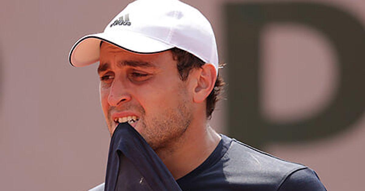 Карацев покидает «Ролан Гаррос». Игра не шла, и Аслан злился – бил себя по голове, сломал ракетку, получил штраф