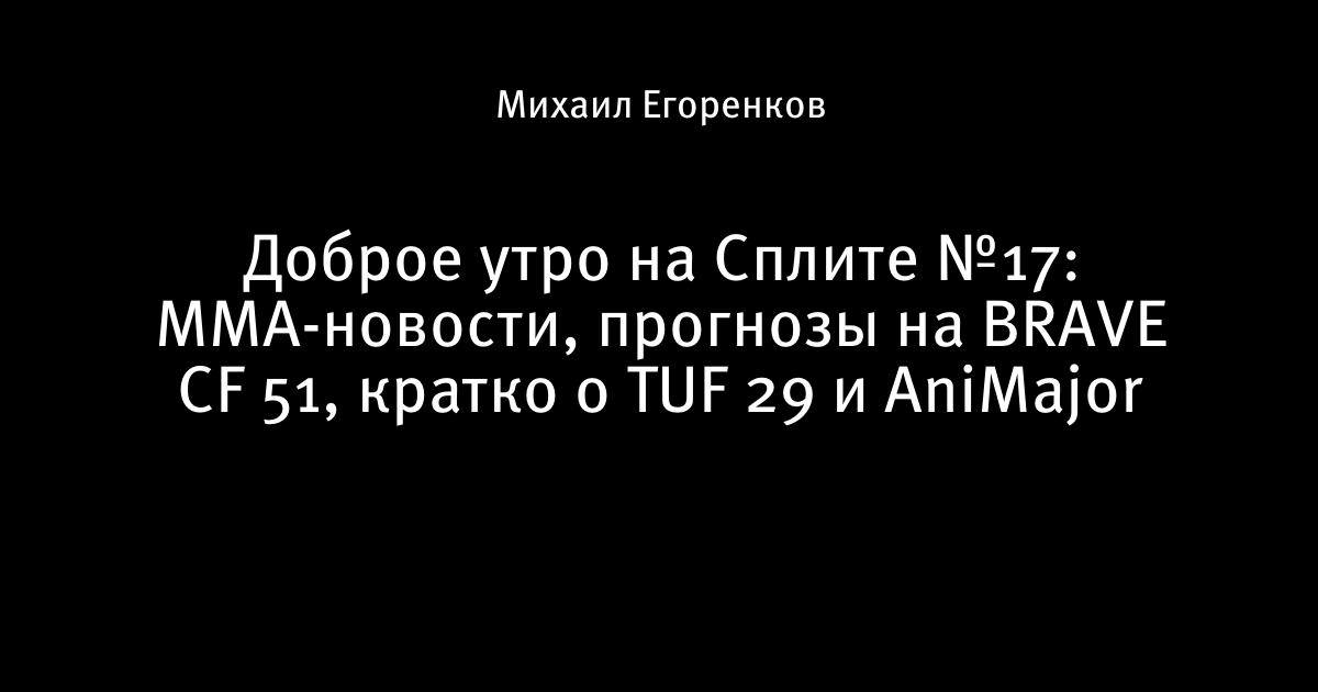 Доброе утро на Сплите №17: ММА-новости, прогнозы на BRAVE CF 51, кратко о TUF 29 и AniMajor